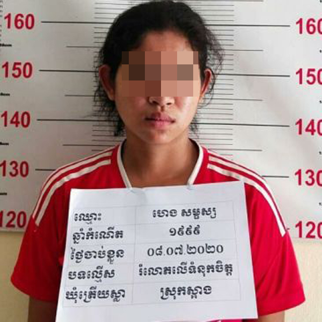 ប្រភពដដែលបន្តថា លុះមកដល់វេលាម៉ោង៨ព្រឹក ថ្ងៃទី០៨ ខែកក្កដា ឆ្នាំ២០២០ ជនរងគ្រោះក៏បានប្រទះឃើញ នារីសង្ស័យខាងលើ ជិះម៉ូតូកង់បី១គ្រឿង នៅនៅឃុំត្រើយស្លា ក៏បានឃាត់នារីជើងល្អរូបនោះជាប់ រួចនាំយកទៅប្រគល់ឱ្យសមត្ថកិច្ចតែម្តង។