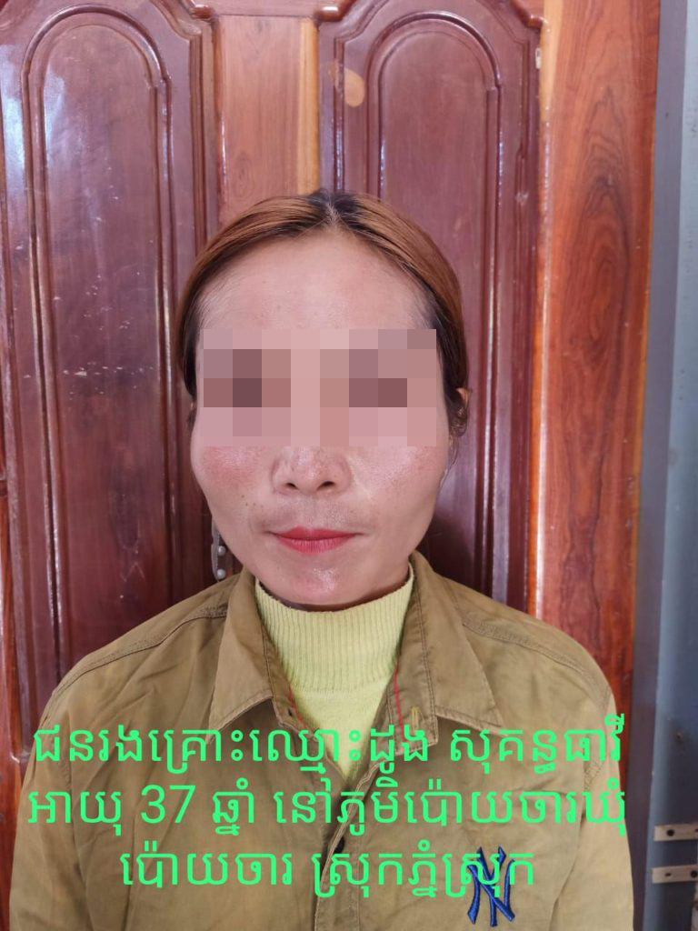 លោកវរសេនីយ៍ឯក យ៉ត សុផល អធិការនគរបាលស្រុកភ្នំស្រុក បានឱ្យដឹងថា ស្ត្រីដែលរងគ្រោះក្នុងអំពើឆបោកខាងលើនេះ មានឈ្មោះដួង សុគន្ធាវី ហៅផួង អាយុ៣៧ឆ្នាំ មានលំនៅភូមិប៉ោយចារ ឃុំប៉ោយចារ ស្រុកភ្នំស្រុក។ ចំណែកជនសង្ស័យត្រូវបានស្ត្រីរងគ្រោះអះអាងថា មានឈ្មោះវាសនា មុខរបរអ្នករកស៊ី និងរស់នៅខេត្តស្ទឹងត្រែង។