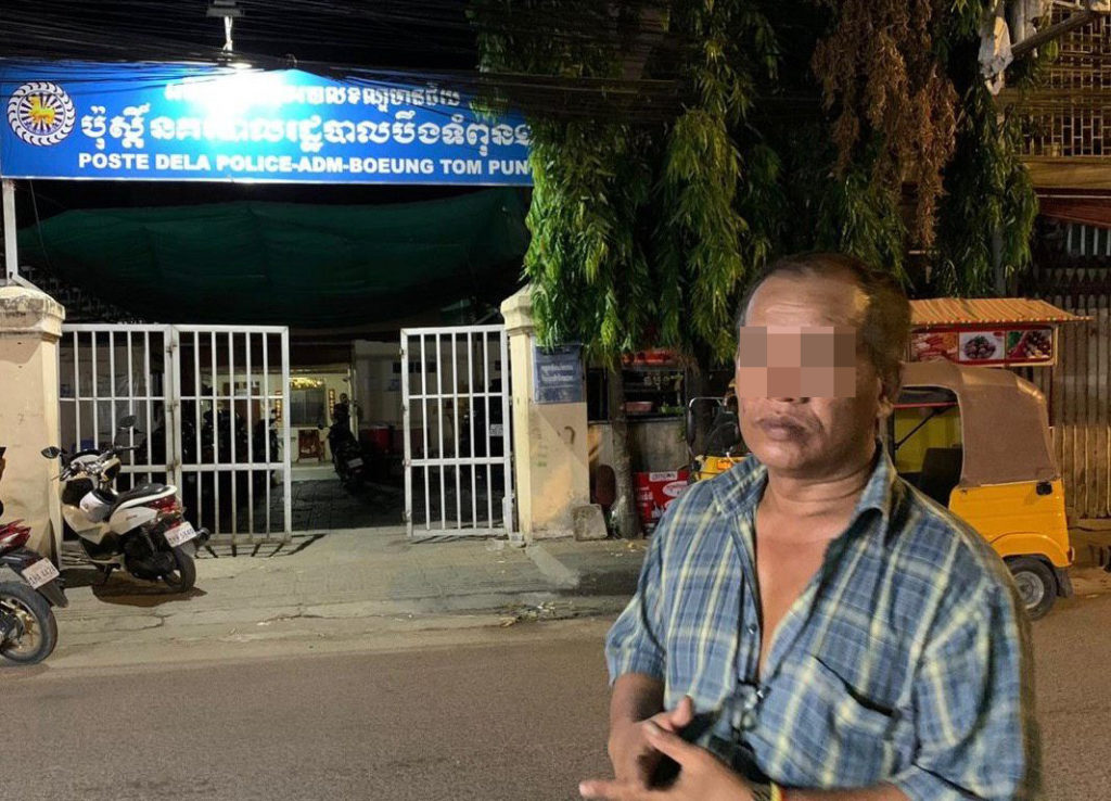 ជនរងគ្រោះបានបន្តថា ពេលនោះគាត់ក៏បានដឹកពួកគេរហូតមកដល់ផ្លូវបេតុងខាងក្រោយបុរី៩៩៩ ស្ថិតក្នុងសង្កាត់បឹងទំពុនទី១ ខណ្ឌមានជ័យ ជាកន្លែងស្ងាត់ ស្រាប់តែជនសង្ស័យឲ្យគាត់ឈប់កង់បី ហើយបានចុះដើរទៅបាត់ទៅ ភ្លាមនោះរូបគាត់ក៏បានលូកយកទូរស័ព្ទពីកាបូបដែលដាក់ជាប់នឹងចង្កេះ ស្រាប់តែបាត់អស់ចំនួន២គ្រឿងដោយក្នុងនោះ១គ្រឿង ម៉ាក iPhone និង១គ្រឿងទៀត ម៉ាក Oppo ភ្លាមនោះរួបគាត់ក៏បើកតាមរកក្រុមជនសង្ស័យ រហូតមកដល់មុខភ្នំពេញស្ព័តក្លឹប ទើបប្រទះឃើញជនសង្ស័យម្នាក់ក៏ឃាត់ខ្លួនបានភ្លាមៗតែម្តង។