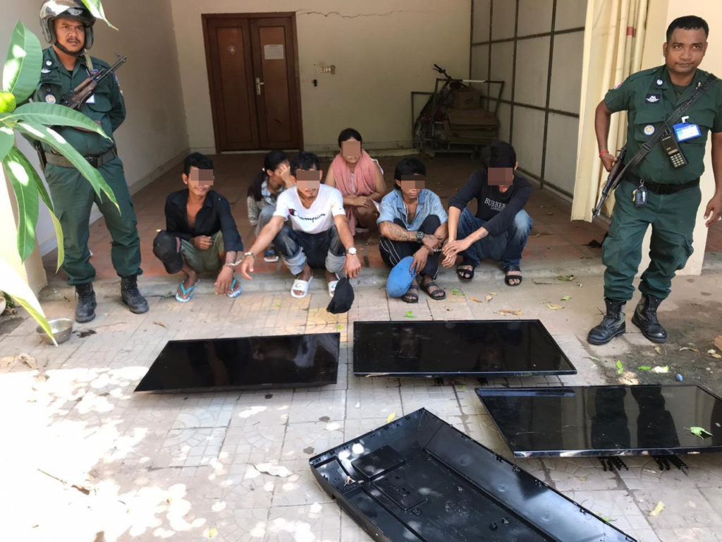 ភ្នំពេញ ៖ ជនសង្ស័យប្រុសស្រីចំនួន៦នាក់ ត្រូវបានកម្លាំងនគរបាលខណ្ឌចំការមន ឃាត់ខ្លួន បន្ទាប់ពីពួកគេបានធ្វើសកម្មភាពលួចចូលទៅក្នុងអគារអាផាតមិនមួយកន្លែង ដើម្បីលួចគាស់យកទូរទស្សន៍បានចំនួន១១គ្រឿង ហើយពាក់ព័ន្ធនឹងប្រើប្រាស់គ្រឿងញៀនថែមទៀត។