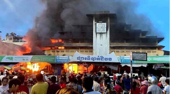 ខេត្តបាត់ដំបង ៖ ផ្សារធំបាត់ដំបង ឬហៅថា ផ្សារណាត់បាត់ដំបង ត្រូវបានអគ្គិភ័យឆាបឆេះយ៉ាងសន្ធោសន្ធៅ និងត្រូវបានសមត្ថកិច្ចជំនាញប្រើពេលពន្លត់អស់ជាង២ម៉ោង ទើបអាចគ្រប់គ្រងស្ថានការណ៍បាន។ យ៉ាងណា តូបលក់ដូររបស់អាជីវករប្រមាណជា៥០តូប ពោលគឺមួយចំហៀងនៃផ្សារណាត់នេះត្រូវបានអគ្គិភ័យលេបត្របាក់អស់គ្មានសល់។