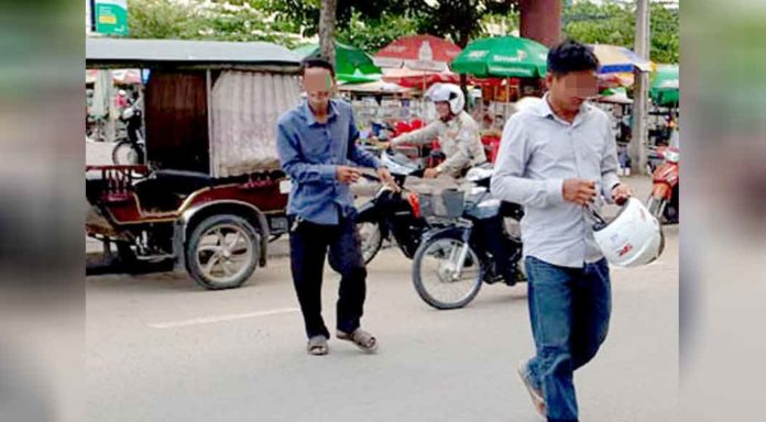 បុរសទាំង៣នាក់ ដែលត្រូវបានកម្លាំងមានសមត្ថកិច្ចចាប់ឃាត់ខ្លួន រួមមាន ទី១- ឈ្មោះហុក វី អាយុ៣៨ឆ្នាំ មុខរបររត់កង់បីខ្មែរ (ជាម្ចាស់កាំបិតផ្គាក់) មានលំនៅក្នុងសង្កាត់បឹងត្របែក ខណ្ឌចំការមន ទី២- ឈ្មោះ ធន់ ទុយ អាយុ៣៨ឆ្នាំ មុខរបរត់ម៉ូតូកង់បីឥណ្ឌា (ម្ចាស់ដំបង) ស្នាក់នៅភូមិឫស្សី ក្នុងសង្កាត់ស្ទឹងមាន និងទី៣- ឈ្មោះធន់ ចំរើន អាយុ៤០ឆ្នាំ មុខរបរត់ម៉ូតូឌុប មានលំនៅម្តុំបឹងត្របែក ខណ្ឌចំការមន ត្រូវជាបងបង្កើតម្ចាស់កង់បីឥណ្ឌា។