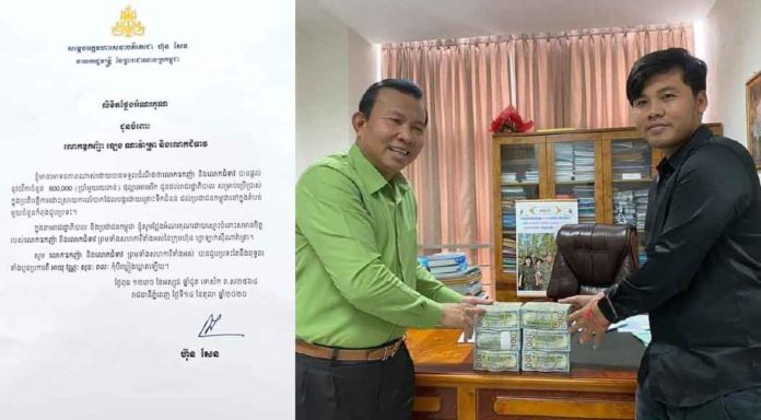 ក្នុងតួលេខសប្បុរសជនដែលបានបរិច្ចាគថវិការជូនសម្ដេចតេជោ ហ៊ុន សែន នាយករដ្ឋមន្ត្រីនៃព្រះរាជាណាចក្រកម្ពុជា ដើម្បីចូលរួមជួយប្រជាជនក្នុងគ្រោះជំនន់ទឹកភ្លៀង ដែលកំពុងកើតមាននៅក្នុងប្រទេស គិតត្រឹមម៉ោង៩ព្រឹក ថ្ងៃ១៦ ខែតុលា ឆ្នាំ២០២០នេះ ថវិកាទទួលបាន6,153,049ដុល្លារ និង 204លានរៀលហើយ។