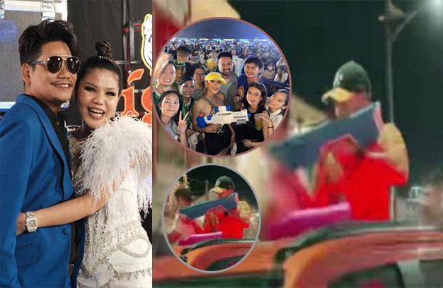 ក្រឡេកមកមកមើលតារាចម្រៀងសំនៀងផ្អែមមាស សុខសោភា វិញក៍មិនខុសពី​លោ​ក​​ព្រាប សុវត្ថិ ដែរដោយ​នាងជាប់ច្រៀងសម្ដែង៣ថ្ងៃជាប់គ្នា​សម្រាប់ពិធីបុណ្យចូលឆ្នាំខ្មែរ​នេះ​ហើយពេលទំនេរពីច្រៀងរាំសោភា បាននាំ​ប្ដីកាន់កំាំភ្លើងជ័របាញ់ទឹកផ្អើលអស់Fan ទាំង​ឡាយ​ដោយមានខ្លះទៅប៉ាតម្សៅនិង​ចាប់អោបថើបនាង​កណ្ដាល​ហ្វូងមនុស្សទៀតផង។សោភា ដែល​ទទឹកខ្លួនជោគនោះរីករាយខ្លាំងណាស់​ព្រោះថាមានអ្នកគាំទ្រនាងជាច្រើន​បាន​បង្ហា​ញភាព​ស្និតស្នាលនិងថតរូបSelfie ជាមួយនាងប្រកបដោយក្ដីស្រលាញ់។