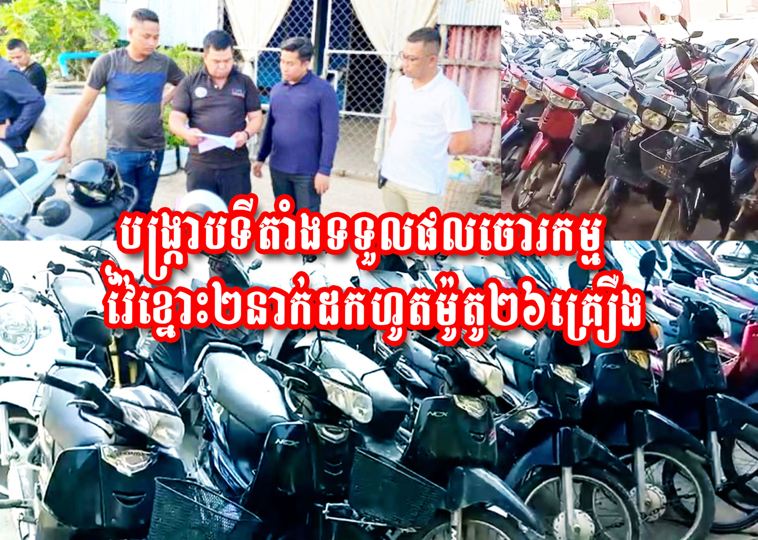 បង្ក្រាបទីតាំងទទួលផលចោរកម្ម វ៉ៃខ្នោះ២នាក់ ដកហូតម៉ូតូ ២៦គ្រឿង