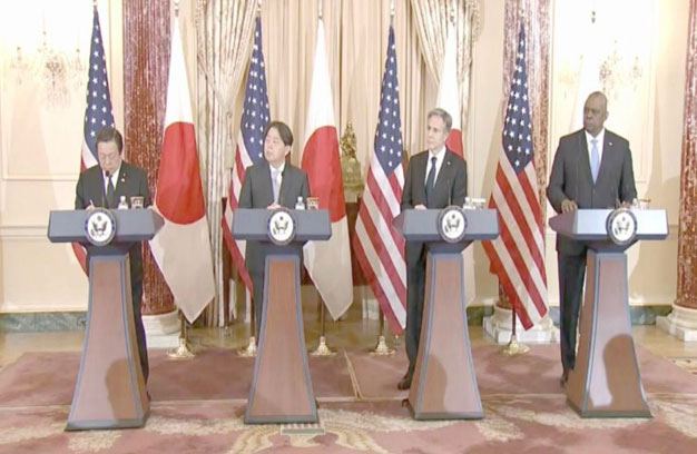 លោក Blinken ក៏បាននិយាយផងដែរថា សហរដ្ឋអាមេរិកសាទរចំពោះការសន្យារបស់ប្រទេសជប៉ុន​ក្នុងការ​ចំ​ណាយ​លើវិស័យការពារជាតិទ្វេដងនៅឆ្នាំ ២០២៧ ដោយកត់សម្គាល់ថាយុទ្ធសាស្រ្តរបស់ប្រទេសជប៉ុន​ត្រូវបាន​តម្រឹមយ៉ាងជិតស្និទ្ធជាមួយនឹងយុទ្ធសាស្រ្តសន្តិសុខជាតិរបស់យើងផ្ទាល់” ។