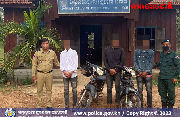 ពោធិ៍សាត់ ៖ ក្មេងទំនើងមួយក្រុម មានគ្នា៣នាក់ ជិះម៉ូតូកែច្នៃខុសបច្ចេកទេស និងបំពាក់ស៊ីម៉ាំងបំពងសំឡេង ត្រូវសមត្ថកិច្ចនគរបាលបង្ក្រាប ឃាត់ខ្លួន កាលពីវេលាម៉ោង ៣និង៣៥នាទីរសៀល នៅថ្ងៃទី៣០ ខែមីនា ឆ្នាំ ២០២៣ នៅលើផ្លូវក្រាលកៅស៊ូ ត្រង់ចំណុចភូមិរំលេច ឃុំរំលេច ស្រុកបាកាន។