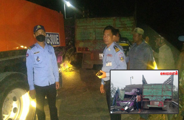 តាកែវ ៖ រថយន្តធុនធំ ចំនួន២គ្រឿង បើកបរក្នុងទិសដៅបញ្ច្រាសគ្នា ក្នុងល្បឿនយ៉ាងលឿន រួចជ្រុលបុកគ្នា យ៉ាងពេញទហឹង បណ្តាលឱ្យអ្នកបើកបររថយន្តម្ខាង ស្លាប់នៅនឹងកន្លែងយ៉ាងអាណោចអាធ័ម។