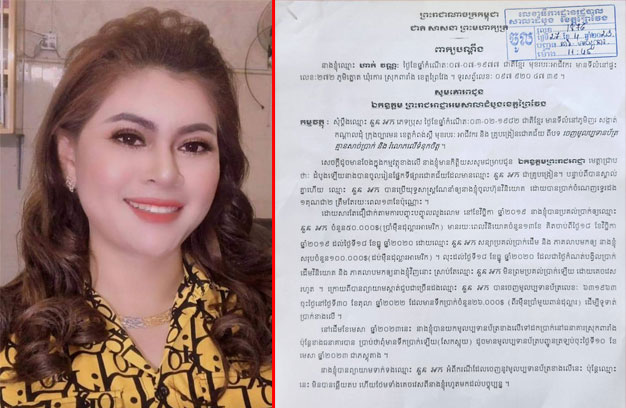 ព្រៃវែង ៖ ស្ត្រីរូបស្រស់ម្នាក់ បានដាក់ពាក្យប្តឹងឧកញ៉ា ១រូប ទៅសាលាដំបូងខេត្តព្រៃវែង កាលពីថ្ងៃទី២៧ ខែមេសា ឆ្នាំ២០២៣ ពីបទចេញមូលប្បទានបត្រគ្មានសាច់ប្រាក់ (សែកស្អុយ) និងរំលោភលើទំនុកចិត្ត ។