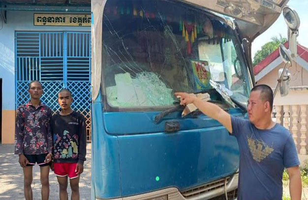ខឹងបើកភ្លើងហ្វាចាំងភ្នែក គប់បែកកញ្ចក់ឡាន ជាប់ខ្នោះ២