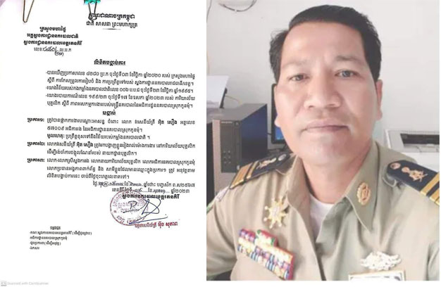 មន្ត្រីនគរបាលដែលត្រូវបានដកបញ្ឈរជើងនោះ មានឈ្មោះអ៊ិត សឿង ជាមន្ត្រីនគរបាលជាតិមានឋា នន្តរស័ក្តិវរសេនីយ៍ត្រី តួនាទីជាអធិការរងនគរបាលស្រុកកូនមុំ។