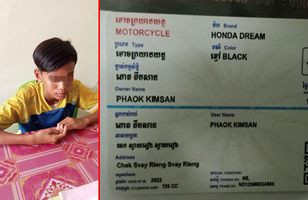 យោងតាមសមត្ថកិច្ចនគរបាលក្រុងស្វាយរៀង បានឱ្យដឹងថា ក្មេងសិស្សសាលារងគ្រោះដែលជន សង្ស័យ ដាក់ថ្នាំយកម៉ូតូ មានឈ្មោះអេង កំណាន់  អាយុ១៦ឆ្នាំ មុខរបរសិស្ស រស់ក្នុងភូមិចេក សង្កាត់ចេក ក្រុងស្វាយ រៀង។ ចំណែកម៉ូតូដែលត្រូវជនសង្ស័យយកទៅបាត់ ម៉ាកហុងដា ឌ្រីម សេ១២៥ ស៊េរីឆ្នាំ២០២២ ពាក់ស្លាកលេខ ស្វាយរៀង 1T-7700 ជាកម្មសិទ្ធិរបស់ឈ្មោះភោគ គឹមសាន្ត  រស់ក្នុងភូមិចេក សង្កាត់ចេក ក្រុងស្វាយរៀង។