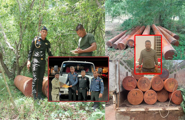 ឈើសសរមូល ២៤ដើម ឈ្មួញលាក់ក្នុងចម្ការ ប្រុងឆ្លងដែនទៅយួន