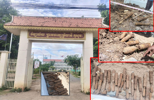 ក្រចេះ ៖ គណៈគ្រប់គ្រងវិទ្យាល័យព្រះមហាក្សត្រិយានី កុសុមៈ ស្ថិតក្នុងក្រុងក្រចេះ បានហៅក្រុមជាងមក ជួសជុលអគារសិក្សា និងចាក់សាប ស្រាប់តែពេលក្រុមជាងកាយដី ប្រទះឃើញគ្រាប់យុទ្ធភណ្ឌមិនទាន់ផ្ទុះ ជាច្រើនគ្រាប់ ទើបលោកនាយកវិទ្យាល័យ ប្រញាប់រាយការណ៍ទៅសមត្ថកិច្ច និងមន្ត្រីជំនាញស៊ីម៉ាក់ ចុះមក ដោះយក ស្រាប់តែប្រទះឃើញគ្រាប់ដល់ទៅជាង២០០០គ្រាប់។
