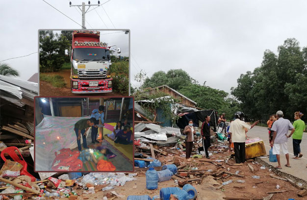 ឧត្តរមានជ័យ ៖ រថយន្តថៃ សណ្តោងរ៉ឺម៉ក ១គ្រឿង បើកបរក្នុងល្បឿនយ៉ាងលឿនដូចហោះ រួចបុកគោ ១ក្បាល បណ្តាលឱ្យងាប់នៅនឹងកន្លែង រួចជ្រុលទៅបុករះតូបចាប់ហួយ លើចិញ្ចើមផ្លូវ ចំនួន៣ខ្នង បណ្តាលឱ្យខូចខាត ខ្ទេច និងបណ្តាលឱ្យស្ត្រីម្នាក់ ស្លាប់យ៉ាងអាណោចអាធ័ម។