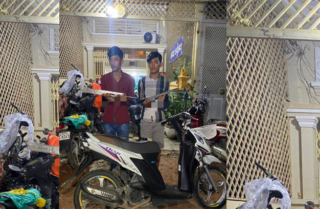 ភ្នំពេញ ៖ ក្មេងទំនើង ១ក្រុម មានគ្នាប្រមាណជិត ២០ម៉ូតូ ប្រដាប់ដោយដាវ កាំបិត បម្រុងទៅកាប់គ្នាតែគាប់ ជួនពេលកំពុងធ្វើដំណើរតាមផ្លូវ បានជួបនឹងសមត្ថកិច្ចល្បាត ភ័យខ្លួន នាំគ្នាជិះម៉ូតូរត់គេចអស់នៅសល់ តែក្មេងស្ទាវ ២នាក់ រត់មិនទាន់ ត្រូវសមត្ថកិច្ចក្របួចជាប់ ព្រមទាំងដកហូតបានដាវ ចំនួន៣ដើម។ការឃាត់ខ្លួនជនសង្ស័យទាំង២នាក់ខាងលើ បានធ្វើឡើង កាលពីវេលាម៉ោង ១រំលងអធ្រាត្រ ឈានចូលថ្ងៃទី២៧ ខែសីហា ឆ្នាំ២០២៣ នៅចំណុចបណ្តោយផ្លូវកា៥ ក្រុម៧ ភូមិចុងខ្សាច់ សង្កាត់ទួលសង្កែ១ ខណ្ឌឫស្សីកែវ។
