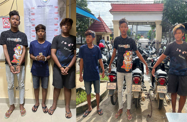 ភ្នំពេញ ៖ ជនសង្ស័យជាក្រុមចោរវ័យក្មេង ១ក្រុម ជិះម៉ូតូដេញតាមគេពេលយប់ រួចយកដុំថ្មប្លន់ម៉ូតូ ជាលើកដំបូង តែភ្លាត់ស្នៀត គប់មិនត្រូវ ប្លន់មិនបានសម្រេច បែរជាត្រូវសមត្ថកិច្ចចាប់ក្របួចជាប់ ចំនួន៣នាក់ នាំយកទៅចាត់ ការតាមច្បាប់។