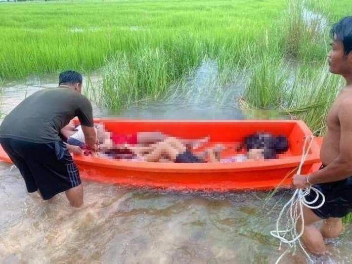 ជីនដូនរបស់ក្មេងស្រីរងគ្រោះ បានបន្តថា លុះដល់ម៉ោងជាង ៥ល្ងាចទៅហើយ នៅតែមិនទាន់ឃើញចៅ ទាំង៣នាក់ វិលត្រឡប់មកផ្ទះវិញទៀត ទើបគាត់សង្ស័យ ក៏បានទៅបបួលអ្នកភូមិ និងរាយការណ៍ ប្រាប់សមត្ថកិច្ច ចុះទៅស្វែងរកមនុស្ស។ លុះទៅកន្លែងកើតហេតុ ប្រទះឃើញ តែខោអាវរបស់ចៅស្រី នៅមាត់ប្រឡាយ លុះពេលចុះរាវរកក្នុងប្រឡាយ មួយសន្ទុះ ក៏ប្រទះឃើញចៅស្រីទាំង៣ ស្លាប់បាត់អស់ទៅ ហើយ។