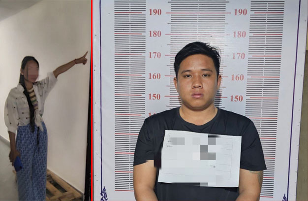 ជនសង្ស័យល្មោភកាមដែលចាប់រំលោភកូនក្រមុំគេ និងត្រូវសមត្ថកិច្ចចាប់ឃាត់ខ្លួន មានឈ្មោះជុន វណ្ណៈ ភេទប្រុស អាយុ២៣ឆ្នាំ មុខរបរសន្តិសុខក្រុមហ៊ុនជីនយ៉ុន ធ្វើការនិងស្នាក់ក្នុងក្រុមហ៊ុន ស្ថិតក្នុងភូមិព្រែកស្ទឹង សង្កាត់សំពៅពូន ក្រុងសំពៅពូន។ រីឯវត្ថុតាងចាប់យក រួមមាន ១-ខោខ្លីពណ៌ខ្មៅ ចំនួន១។ ២-កម្រាលពូកពណ៌ផ្ទៃមេឃ ចំនួន១។ ៣-ប្រេងកូឡាតាប៉ិចំនួន១។ ៤-ទូរស័ព្ទម៉ាក Redmi ពណ៌ខ្មៅ ចំនួន ១គ្រឿង និងទូរស័ព្ទម៉ាក Samsung ពណ៌ស ចំនួន១គ្រឿង (ជារបស់ជនសង្ស័យ)។ រីឯយុវតីរងគ្រោះ មាន អាយុ១៩ឆ្នាំ មុខរបរបុគ្គលិកផ្នែកអនាម័យ នៅក្រុមហ៊ុនជីនយ៉ុន មានលំនៅ ភូមិកំពង់ថ្កុល សង្កាត់សំពៅពូន ក្រុងសំពៅពូន។