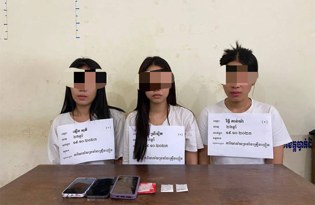ស្រី៣នាក់ សម្ងំជក់ថ្នាំញៀន ជាប់ខ្នោះ