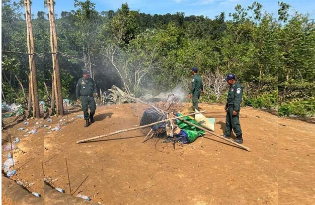 ខេត្តកោះកុង ៖ កម្លាំងនគរបាលស្រុកស្រែអំបិល បានឆ្មក់ចុះបង្ក្រាបទីតាំងសង្វៀនបញ្ជល់មាន់ ភ្នាល់ដាក់ប្រាក់ ១កន្លែង តែពេលចុះទៅដល់ ក្រុមអ្នកញៀនល្បែង បានរត់ចែកផ្លូវគ្នាអស់ ទើបសមត្ថកិច្ចបានត្រឹមរុះរើសម្ភារៈ (សង្វៀនមាន់ចល័ត) ដុតកម្ទេចចោលនៅនឹងកន្លែងតែម្តង។