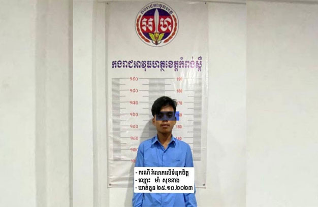 ជនសង្ស័យដែលត្រូវបានឃាត់ខ្លួន មានឈ្មោះមាំ សុខនាង ភេទប្រុស អាយុ២២ឆ្នាំ មុខរបរបុគ្គលិកក្រុមហ៊ុន ឥណទាន KEP មានលំនៅ ភូមិពោធិ៍មាស ឃុំត្រពាំងជោរ ស្រុកឱរ៉ាល់។