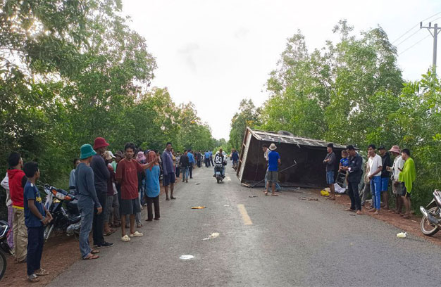 ខេត្តកំពង់ស្ពឺ ៖ ក្រុមកម្មករបេះផ្លែស្វាយ ប្រមាណ៦០នាក់ កំពុងធ្វើដំណើរតាមរថយន្ត ១គ្រឿង ស្រាប់តែត្រូវ រថយន្ត ១គ្រឿងទៀត ជ្រុលមកបុក បណ្តាលឱ្យរថយន្តដឹកកម្មករបេះស្វាយ ក្រឡាប់ទាំងកំរោល ចាក់កម្មករ ចោល រងរបួសធ្ងន់-ស្រាល ដេកដួលរដូករណែលពេញផ្លូវ និងត្រូវបានដឹកបញ្ជូនទៅសង្គ្រោះនៅ មន្ទីរពេទ្យ ភ្លាមៗ។