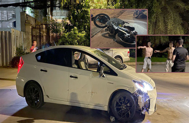 ភ្នំពេញ ៖ បុរសម្នាក់ ផឹកស្រវឹងធ្លាក់ភ្នែក បើករថយន្ត ១គ្រឿង ក្នុងល្បឿនលឿន រួចជ្រុលទៅបុករ៉ឺម៉កម៉ូតូ ដឹកអេតចាយ ពីក្រោយ បណ្តាលឱ្យរងការខូចខាត តែមិនព្រមឈប់ដោះស្រាយ ទទួលខុសត្រូវបែរជា ព្យាយាមបើករថយន្តរត់គេច លុះពេលប្រជាពលរដ្ឋប្រទះឃើញ ជួយដេញតាមឃាត់រថយន្ត ស្រាប់តែ កើតមានជាហិង្សាវាយគ្នា បណ្តាលឱ្យអ្នកបើកបររថយន្ត រងរបួសបែកក្បាល ហូរឈាម និងត្រូវសមត្ថ កិច្ចចុះអន្តរាគមន៍ ឃាត់ភាគីទាំងសងខាងទៅសាកសួរ។