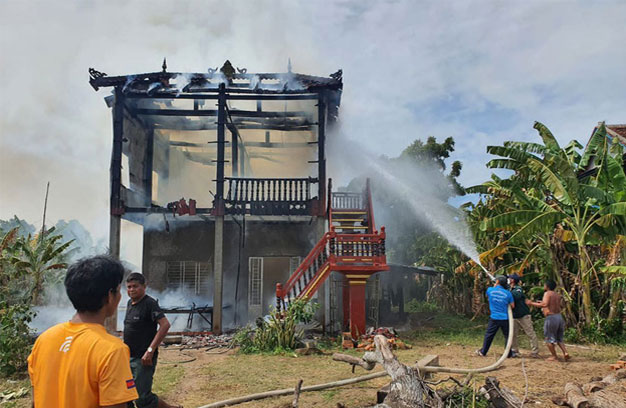 ភ្លើងឆេះផ្ទះ ឪបីកូន២នាក់រត់ចេញទាន់