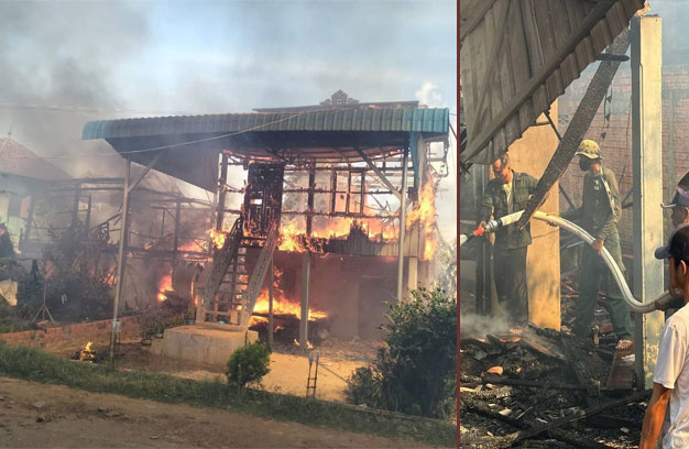 ខេត្តកំពង់ចាម ៖ លំនៅឋានរបស់ប្រជាពលរដ្ឋចំនួន៣ខ្នង ត្រូវបានអគ្គិភ័យឆាបឆេះយ៉ាងសន្ធោសន្ធៅ បង្កឱ្យខូចខាតទាំងស្រុងចំនួន ២ខ្នង ចំណែក១ខ្នងទៀត ត្រូវសមត្ថកិច្ចជួយបាញ់ទឹកពន្លត់ទាន់ពេលគ្រាន់ តែខូចខាតជញ្ជាំង១ចំហៀងប៉ុណ្ណោះ ចំណែកមូលហេតុ ផ្តើមចេញពីការឆ្លងចរន្តអគ្គិសនី។ករណីអគ្គិភ័យខាងលើ បានកើតឡើង កាលពីវេលាម៉ោង២ និង១០នាទីរសៀល ថ្ងៃទី១៧ ខែធ្នូ ឆ្នាំ២០២៣ នៅចំណុចភូមិជីប៉ោ ឃុំស្វាយពោធិ៍ ស្រុកស្រីសន្ធរ។