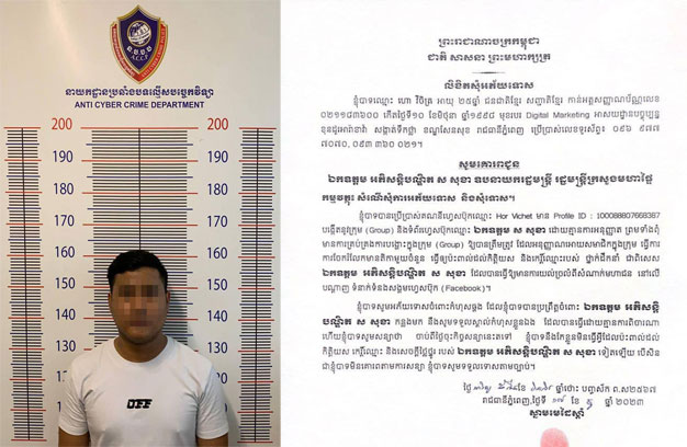 ប្រភពដដែល បន្តថា កាលពីថ្ងៃទី១៦ ខែធ្នូ ឆ្នាំ២០២៣ នាយកដ្ឋានប្រឆាំងបទល្មើសបច្ចេកវិទ្យា បានអញ្ជើញ បុគ្គលម្នាក់ឈ្មោះហោ វិចិត្រ ភេទប្រុស មានលំនៅក្នុងរាជធានីភ្នំពេញ ដើម្បីមកសាកសួរបំភ្លឺនៅនាយក ដ្ឋានប្រឆាំងបទល្មើស បន្ទាប់ពីរកឃើញថា បុគ្គលរូបនេះបាន យកឈ្មោះលោក ស សុខា ឧបនាយករដ្ឋមន្ត្រី រដ្ឋមន្ត្រីក្រសួងមហាផ្ទៃ និងថ្នាក់ដឹកនាំផ្សេងទៀត ទៅបង្កើតជាក្រុម (Group) នៅលើបណ្តាញសង្គម ហ្វេសប៊ុក ដោយគ្មានការអនុញ្ញាត និងបានចែករំលែកមាតិកាផ្សេងៗ ដែលប៉ះពាល់ដល់សន្តិសុខជាតិ និងកិត្តិយសថ្នាក់ដឹកនាំដែលអាចធ្វើឱ្យមានការភាន់ច្រឡំពីសំណាក់មហាជន។ ក្រោយពីការសួរបញ្ជាក់ បុគ្គលឈ្មោះ ហោ វិចិត្រ បានសារភាពទទួលស្គាល់កំហុស សន្យាកែខ្លួន មិនឱ្យកើតឡើងពេលក្រោយ ទៀតឡើយ និងបានធ្វើលិខិតសុំអភ័យទោសជាសាធារណៈ។