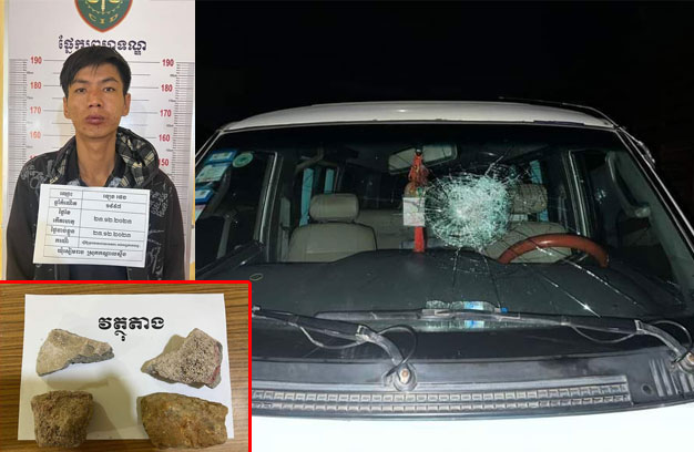 ករណីគប់កញ្ចក់រថយន្តនេះ បានកើតឡើងកាលពីវេលាម៉ោង១១យប់ ថ្ងៃទី២៣ ខែធ្នូ ឆ្នាំ២០២៣ នៅតាម បណ្តោយផ្លូវជាតិលេខ២ ភូមិសៀមរាប ឃុំសៀមរាប ស្រុកកណ្តាលស្ទឹង។ជនសង្ស័យដែលត្រូវសមត្ថកិច្ចចាប់ឃាត់ខ្លួន មានឈ្មោះចេវ ផេង ភេទប្រុស អាយុ២៦ឆ្នាំ មុខរបរមិនពិតប្រាកដ មានលំនៅ ភូមិសៀមរាប ឃុំសៀមរាប ស្រុកកណ្តាលស្ទឹង។ រីឯវត្ថុតាងចាប់យក រួមមាន ដុំថ្មចំនួន៤ដុំ។