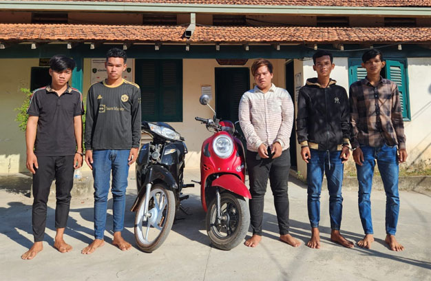ជនសង្ស័យទាំង៥នាក់ ដែលត្រូវសមត្ថកិច្ចចាប់ឃាត់ខ្លួន រួមមាន ទី១-ឈ្មោះរិន ចន្ថា ហៅងុយ ភេទប្រុស អាយុ១៩ឆ្នាំ មុខរបរកម្មកររោងចក្រ រស់នៅភូមិអន្លង់បារាំង ឃុំរលាំងកែន ស្រុកកណ្តាលស្ទឹង ខេត្តកណ្តាល។ ទី២-ឈ្មោះឡេ មនោ ភេទប្រុស អាយុ១៧ឆ្នាំ មុខរបរលក់ស្បែកជើង រស់នៅភូមិច្បារមន ឃុំកុមារាជា ស្រុកបាទី ខេត្តតាកែវ។ (ទាំង២នាក់ ត្រូវបានឃាត់ខ្លួន នៅថ្ងៃទី២៦ ខែធ្នូ ឆ្នាំ២០២៣)។ ទី៣-ឈ្មោះសឿន បារាំង ភេទប្រុស អាយុ១៧ឆ្នាំ មុខរបរកម្មករ រោងចក្រ រស់នៅភូមិតារដ្ឋ ឃុំលំហាច ស្រុកអង្គស្នួល ខេត្តកណ្តាល។ ទី៤-ឈ្មោះចន សំណាង ភេទប្រុស អាយុ១៨ឆ្នាំ មុខរបរកម្មករ រោងចក្រ រស់នៅភូមិច្បារមន ឃុំកុមារាជា ស្រុកបាទី ខេត្តតាកែវ និងទី៥-សឿន បារាំង ភេទប្រុស អាយុ១៧ឆ្នាំ មុខរបរកម្មកររោងចក្រ រស់នៅភូមិតារដ្ឋ ឃុំលំហាច ស្រុកអង្គស្នួល ខេត្តកណ្តាល។ (ទាំង៣នាក់ ត្រូវបានឃាត់ខ្លួន នៅថ្ងៃទី២៧ ខែធ្នូ ឆ្នាំ២០២៣)។តាមប្រភពសមត្ថកិច្ច បានឱ្យដឹងថា កាលពីថ្ងៃទី២៦ ខែធ្នូ ឆ្នាំ២០២៣ ដោយបានការចង្អុលដឹកនាំ ពីលោកឧត្តម សេនីយ៍ទោ សម សាមួន ស្នងការនគរបាលខេត្តកំពង់ស្ពឺ និងការសម្របសម្រួលពីលោក ស៊ិន វិរៈ ព្រះរាជអា ជ្ញា នៃអយ្យការអមសាលាដំបូងខេត្តកំពង់ស្ពឺ នគរបាលការិយាល័យព្រហ្មទណ្ឌកម្រិតធ្ងន់ បានស្រាវជ្រាវ ឃាត់ ខ្លួនជនសង្ស័យ ៥នាក់ ពាក់ព័ន្ធនឹងករណីលួចដោយស្ថានទម្ងន់ទោស (ធាក់ប្លន់ម៉ូតូ) ពីជនរងគ្រោះឈ្មោះជិន សារិន ភេទស្រី អាយុ៣៧ឆ្នាំ រស់នៅភូមិញរ សង្កាត់កណ្តោលដុំ ក្រុងច្បារមន (រងរបួសជង្គង់សងខាង និងកែង ដៃសងខាង)។