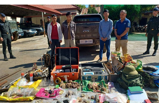 ដោយឡែកវត្ថុតាងក្នុងរថយន្តរបស់ជនសង្ស័យ រួមមាន ឧបករណ៍ស្រូបរុករករ៉ែ ចំនួន៣គ្រឿង ថ្ម ដីច្រកក្នុង ថង់ប្លាស្ទិក ដែកឆក់ សម្រាប់យកទៅពិសោធន៍មួយចំនួន។