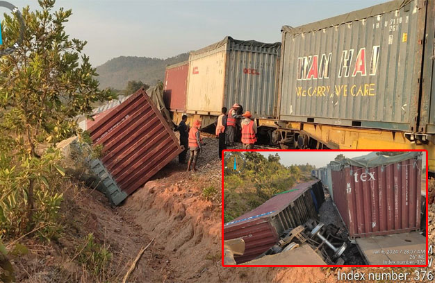 ប្រភពដដែល បន្តថា រថភ្លើង ១ខ្សែខាងលើនេះ ដឹកទូកុងតឺទ័រ ចំនួន២៣កុងតឺន័រ ហើយបានដាច់ទូកុងតឺន័រទី១០ បណ្តាលឱ្យទូកុងតឺន័រចំនួន ៤ទូ ធ្លាក់ចេញពីរថភ្លើង និងកំពប់ស្រូវនិងអង្ករសម្រូប។