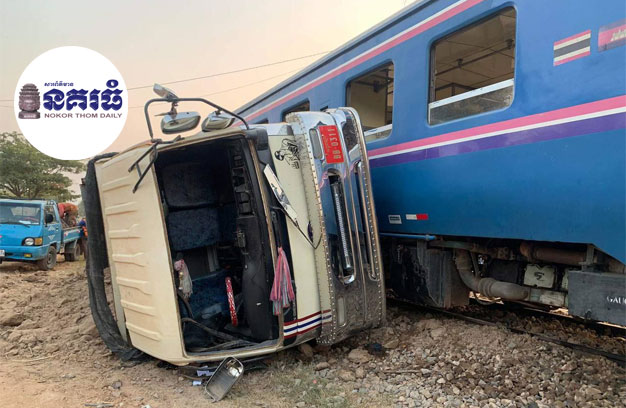 រថភ្លើងបុកឡានដឹកដីក្រឡាប់ តៃកុងរបួសធ្ងន់