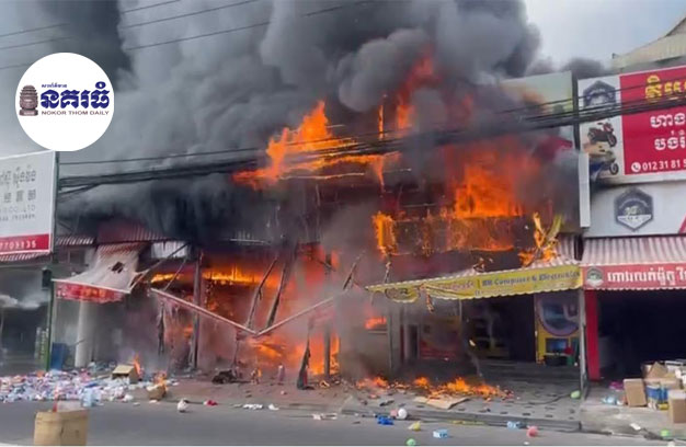ភ្នំពេញ ៖ ផ្ទះលក់គ្រឿងជ័រ កុំព្យូទ័រ និងផ្ទះលក់គ្រឿងសំណង់ សរុប ចំនួន៣ល្វែង ត្រូវបានអគ្គិភ័យឆាបឆេះយ៉ាងសន្ធោរសន្ធៅ បំផ្លាញអស់ទាំងស្រុង គិតជាទំហំនៃការខូចខាត អស់ទឹកប្រាក់រាប់ម៉ឺនដុល្លារ និងត្រូវបានកម្លាំងសមត្ថកិច្ចជំនាញ បញ្ជូនរថយន្តពន្លត់អគ្គិភ័យ ចុះអន្តរាគមន៍ ដោយប្រើប្រាស់ទឹកបាញ់ពន្លត់អស់ប្រមាណជាង ១៥០ឡាន ទើបអាចគ្រប់គ្រងស្ថានការណ៍បានទាំងស្រុង។