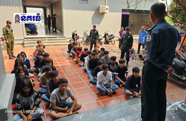 ខេត្តបន្ទាយមានជ័យ ៖ កម្លាំងកងរាជអាវុធហត្ថក្រុងប៉ោយប៉ែត ខេត្តបន្ទាយមានជ័យ បានឃាត់ខ្លួនក្មេងទំនើងប្រុសស្រី ចំនួន៤០នាក់ យកមកអប់រំ ក្នុងនោះមានចំនួន៨នាក់ មានសារធាតុញៀន ត្រូវបានកសាងសំណុំរឿងបញ្ជូនបន្តនីតិវិធី កាលពីថ្ងៃទី១៦ ខែកុម្ភៈ ឆ្នាំ២០២៤។
