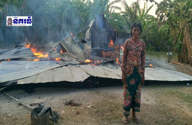 ខេត្តកំពង់ស្ពឺ ៖ ផ្ទះ ១ខ្នង របស់ស្ត្រីវ័យចំណាស់អាយុ៧០ឆ្នាំម្នាក់ ត្រូវបានអគ្គិភ័យឆាបឆេះអស់ទាំងស្រុង ដោយមូលហេតុបណ្តាលមកពីការឆ្លងចរន្តអគ្គិសនី។