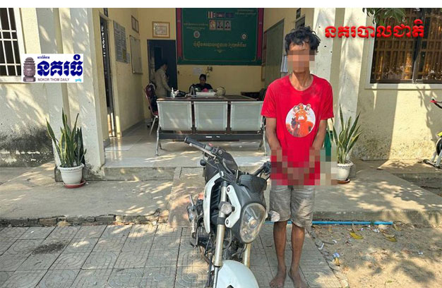 ភ្នំពេញ ៖ ជនសង្ស័យម្នាក់ បានធ្វើសកម្មភាពលួចម៉ូតូ ១គ្រឿង បានសម្រេច តែប៉ះម៉ូតូខូច បញ្ឆេះជិះមិនកើត ក៏បណ្តើរតាមផ្លវ ទីបំផុតត្រូវសមត្ថកិច្ចល្បាតប្រទះឃើញ មានការសង្ស័យឃាត់សាកសួរ ទើបដឹងថា ជាម៉ូតូដែលទើបនឹងលួចបាន ក៏ចាប់វាយខ្នោះ នាំយកទៅចាត់ការតាមច្បាប់។