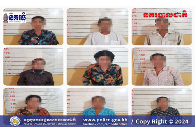 ប្រភពដដែល បន្តថា ក្នុងកិច្ចប្រតិបត្តិការនេះ សមត្ថកិច្ចបានឃាត់ខ្លួនមនុស្សចំនួន៩នាក់ រួមមាន ទី១-ឈ្មោះសាំង រិត ភេទស្រី អាយុ៥៧ឆ្នាំ។ ទី២-ឈ្មោះជៀវ ស្រិល ភេទប្រុស អាយុ៦០ឆ្នាំ រស់នៅភូមិរាជដូនកែវ ឃុំព្រែកនរិន្ទ ស្រុកឯកភ្នំ (ជាប្តីប្រពន្ធម្ចាស់ទីតាំង)។ ៣-ឈ្មោះហ៊ុត វេត ភេទប្រុស អាយុ៦៥ឆ្នាំ រស់នៅភូមិរហាលសួង ឃុំព្រែកនរិន្ទ ស្រុកឯកភ្នំ។ ទី៤-ឈ្មោះសឿប ស័រ ភេទប្រុស អាយុ៧០ឆ្នាំ រស់នៅភូមិរាជដូនកែវ ឃុំព្រែកនរិន្ទ ស្រុកឯកភ្នំ។ ទី៥-ឈ្មោះឌី ចាន់ធី ភេទស្រី អាយុ៥៨ឆ្នាំ រស់នៅភូមិអន្សងសក ឃុំព្រែកនរិន្ទ ស្រុកឯកភ្នំ។ ទី៦-ឈ្មោះអត បូ ភេទស្រី អាយុ៦៧ឆ្នាំ រស់នៅភូមិរាជដូនកែវ ឃុំព្រែកនរិន្ទ ស្រុកឯកភ្នំ។ ទី៧-ឈ្មោះអុន យ៉េត ភេទស្រី អាយុ៦២ឆ្នាំ រស់នៅភូមិរាជដូនកែវ ឃុំព្រែកនរិន្ទ ស្រុកឯកភ្នំ។ ទី៨-ឈ្មោះជា គឿត ភេទស្រី អាយុ៤២ឆ្នាំ រស់នៅភូមិអន្សងសក ឃុំព្រែកនរិន្ទ ស្រុកឯកភ្នំ និងទី៩-ឈ្មោះអ៊ុយ ឆយ ភេទស្រី អាយុ៦៧ឆ្នាំ រស់នៅភូមិអន្សងសក ឃុំព្រែកនរិន្ទ ស្រុកឯកភ្នំ។
