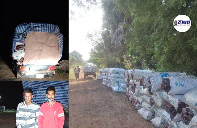 ខេត្តឧត្តរមានជ័យ ៖ រថយន្តកែច្នៃ ចំនួន២គ្រឿង ដឹកជញ្ជូនផលអនុផលព្រៃឈើធ្យូង ដោយគ្មានលិខិត អនុញ្ញាត ត្រូវបានជំនាញមេព្រៃ នៃសង្កាត់រដ្ឋបាលព្រៃឈើកូនក្រៀល ធ្វើការបង្ក្រាបបាន ខណៈដែលក្រុមឈ្មួញកណ្តាលទាំងនោះ បម្រុងលោតឆត្រ ដឹកយកទៅប្រទេសថៃតាមច្រកទ្វារអន្តរជាតិអូរស្មាច់ ក្នុងក្រុងសំរោង ខេត្តឧត្តរមានជ័យ។