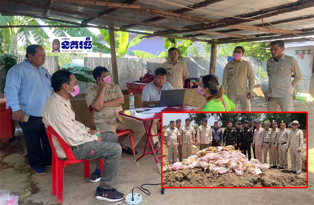 ខេត្តបន្ទាយមានជ័យ ៖ សាច់មាន់ដែលខូចគុណភាពប្រមាណជាង៣តោន ត្រូវបានសមត្ថកិច្ចជំនាញចម្រុះ ចាប់យកទៅដុតបំផ្លាញចោលនៅជាយក្រុងសិរីសោភ័ណ ស្ថិតភូមិខ្លាកូនថ្មី សង្កាត់កំពង់ស្វាយ ក្រុងសិរីសោភ័ណ កាលពីរសៀលថ្ងៃទី០៣ ខែមេសា ឆ្នាំ២០២៤។