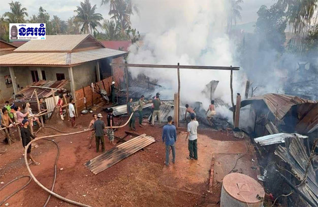 ខេត្តកោះកុង ៖ លំនៅឋានប្រជាពលរដ្ឋ ចំនួន២ខ្នង និងតូបលក់អីវ៉ាន់ចាប់ហួយ ១តូប ត្រូវបានអគ្គិភ័យឆេះបំផ្លាញអស់ ដោយមូលហេតុផ្តើមចេញពីការឆ្លងចរន្តអគ្គិសនី ខណៈដែលម្ចាស់ផ្ទះមិននៅ។