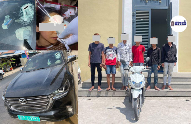 គ…ប់…ដុំថ្មធ្លុះកញ្ចក់ឡាន បែ…ក…ថ្ងា…ស…ស្រី ជាប់ខ្នោះ៦នាក់