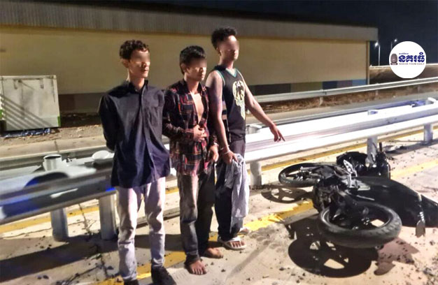 ភ្នំពេញ ៖ ជនសង្ស័យ ចំនួន៣នាក់ ជិះម៉ូតូ ១គ្រឿង ដឹកគ្នានៅពេលយប់ លុះឃើញកម្លាំងសមត្ថកិច្ចកំពុងល្បាត ព្យាយាមជិះរត់គេច តែសំណាងមិនល្អ ដួលម៉ូតូ ធ្លាក់ដាវ២ដើម ព្រមទាំងឧបករណ៍កាច់សោ ម៉ូតូ ១កំប្លេ ទើបចាប់ឃាត់ខ្លួនជនសង្ស័យទាំង២នាក់ នាំយកទៅចាត់ការតាមច្បាប់។