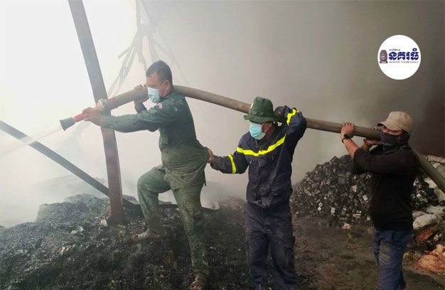 ឃ្លាំងស្តុកសំបកអាគុយ ភ្លើងឆេះហ្មត់