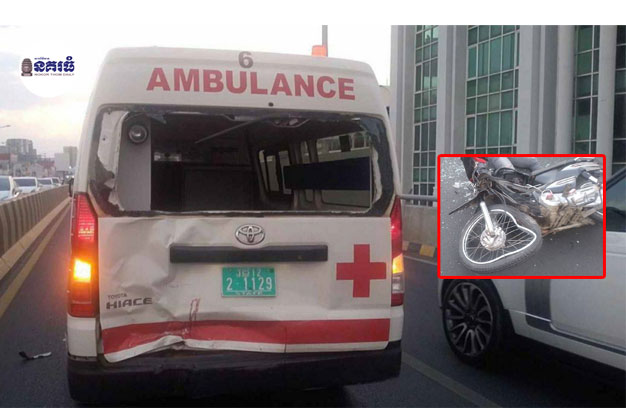 ភ្នំពេញ ៖ យុវជនម្នាក់ ឃើញរថយន្តសង្គ្រោះបន្ទាន់ ១គ្រឿង កំពុងបើកសារ៉ែន បញ្ជូនអ្នកជំងឺទៅសង្គ្រោះបន្ទាន់ ស្រាប់តែបន្ថែមល្បឿនម៉ូតូរបស់ខ្លួនប្រដេញតាមរថយន្តសង្គ្រោះ ជ្រុលទៅបុកពីក្រោយរថយន្តសង្គ្រោះ ពេញទំ ហឹង បណ្តាលឱ្យដួលបាក់ដៃ បែកក្បាល សន្លប់ស្តូក ចំណែករថយន្តសង្គ្រោះ រងការខូចខាតផ្នែកខាងក្រោយ។ហេតុការណ៍នេះ បានកើតឡើងកាលពីវេលាម៉ោង៦ព្រលប់ ថ្ងៃទី១៦ ខែឧសភា ឆ្នាំ២០២៤ នៅត្រង់ចំណុចលើស្ពានអាកាសផ្សារដីហុយ ស្ថិតក្នុងភូមិទ្រុងមាន់ សង្កាត់អូរបែកក្អម ខណ្ឌសែនសុខ។