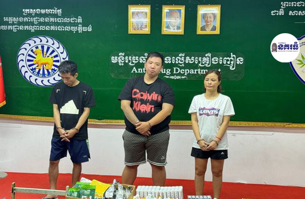 ភ្នំពេញ ៖ សមត្ថកិច្ចជំនាញ មន្ទីរប្រឆាំងបទល្មើសគ្រឿងញៀន នៃអគ្គស្នងការដ្ឋាននគរបាលជាតិ កាលពីវេលាម៉ោង១១ព្រឹក ថ្ងៃទី២២ ខែឧសភា ឆ្នាំ២០២៤ បានធ្វើការបង្ហាញមុខក្រុមឧក្រិដ្ឋជនគ្រឿងញៀន ប្រុសស្រីចំនួន៣នាក់ជាជនជាតិវៀតណាម ជាសាធារណៈ ដែលកម្លាំង នគរបាលធ្វើការបង្ក្រាប និងដកហូតនូវសារធាតុញៀន ជាង១០គីឡូក្រាម។