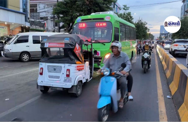 ភ្នំពេញ ៖ បុរសម្នាក់បើកបរកង់បីឥណ្ឌា បញ្ច្រាសផ្លូវ ជ្រុលទៅបុកចំពីមុខរថយន្តក្រុងដឹកអ្នកដំណើររបស់សាលារាជធានីភ្នំពេញ បណ្តាលអាចរងការខូចខាត។